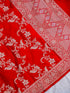 A magnificent handwoven red pure kataan silk dupatta, embellished with an all-over jaal in fine zari. The rich silk fabric enhances the intricate weave, creating a piece that exudes regal charm and timeless elegance. Perfect for festive occasions and celebratory ensembles, this dupatta is a statement of heritage and craftsmanship.